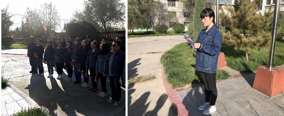 上午9時整,升起儀式正式開始,激昂的《義勇軍進(jìn)行曲》莊嚴(yán)響起,擎旗手揮臂揚(yáng)起,五星紅旗冉冉升起。全體團(tuán)員青年面向國旗列隊并行注目禮,共同祝愿偉大祖國繁榮富強(qiáng),祝福物產(chǎn)明天更加燦爛美好。